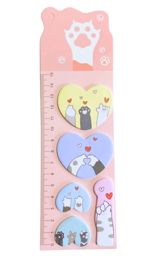 Ideal para organizar suas tarefas com estilo e praticidade. Este conjunto inclui blocos adesivos em formatos divertidos de patinhas e gatinhos, acompanhados de uma régua de 15 cm integrada, perfeita para marcar páginas ou medir pequenos itens. É um produto funcional e visualmente atraente para estudantes, profissionais e amantes de papelaria.