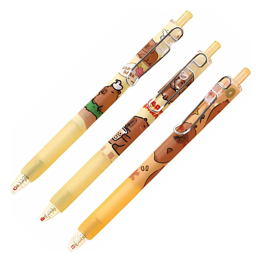 Esta caneta tem design único com estampas divertidas de capivaras.
